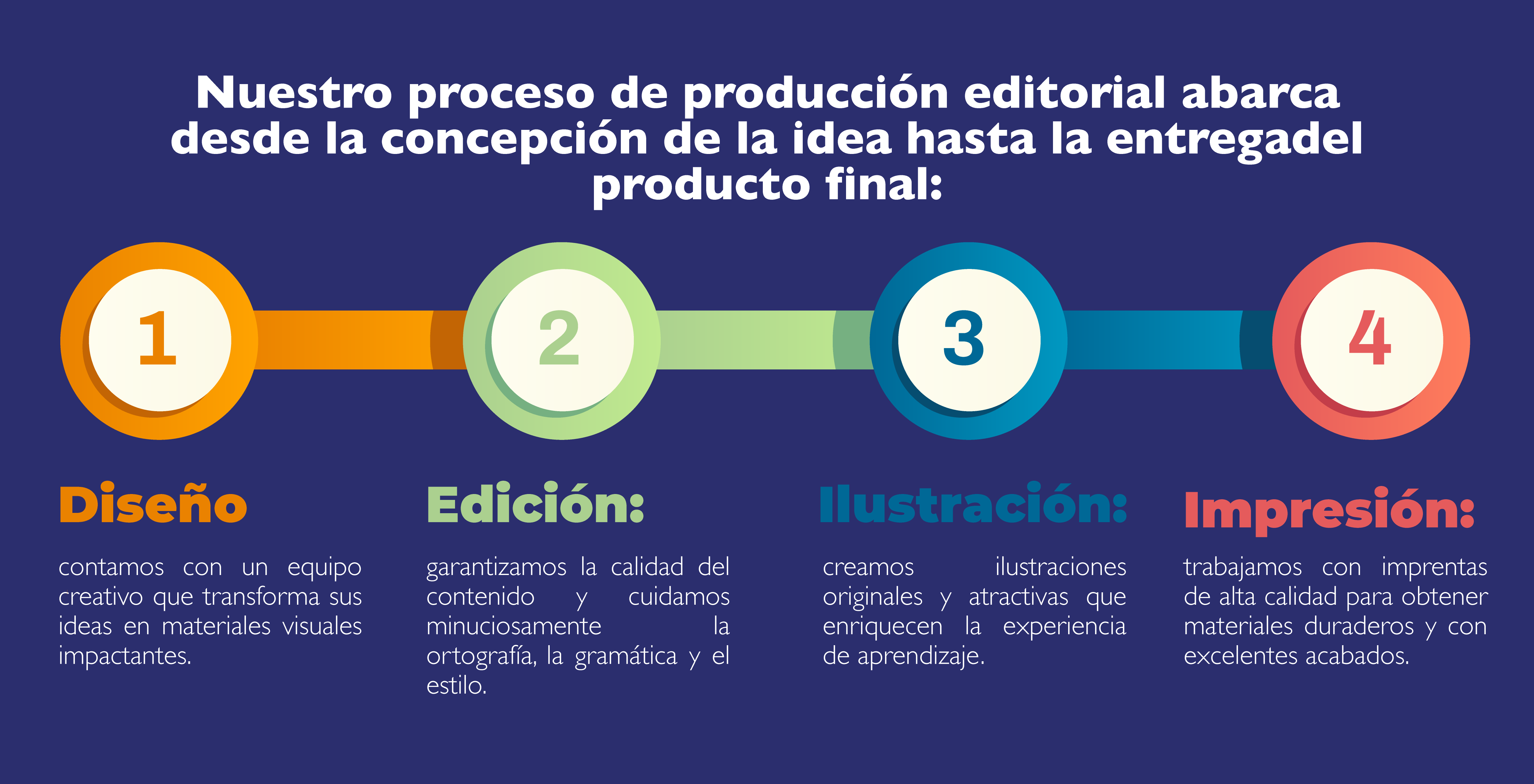 Producción digital o impresa que incluye diseño, edición, ilustración e impresión. También desarrollamos libros electrónicos interactivos y accesibles.